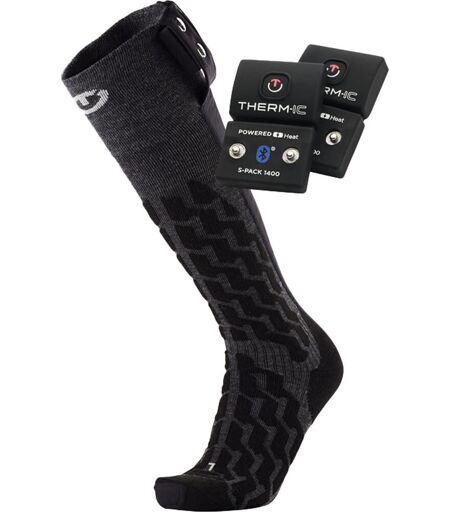 Powers Set- Uni + fra Therm-ic er en teknisk, myk og pustende varmesokk / skisokk med effektiv fuktighetstransport. Sokken tilbyr ekstra varme i de mest sensitive partiene på foten, mens mikrokanal-konstruksjonen i materialet sørger for god fukttransport. Sokken kommer med varmepaneler og S-pack 1400-batterier USB ladekabel inkludert. Denne batteripakken er utstyrt med Bluetooth-teknologi slik at du kan ha kontroll på varmenivået direkte fra din smartphone. Varmer i opptil 16 timer Bluetooth-teknologi Hæl- og tåforsterkninger Materiale: 49% Akry, 27% Polyamide, 10% Merinoull, 12% Polypropylene, 2% Elastan ...