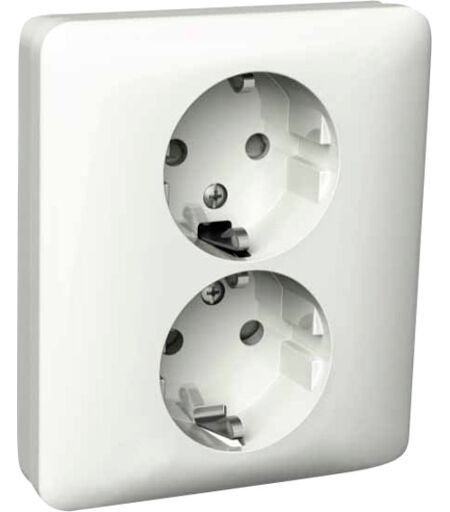 Schneider Electric Exxact dobbel stikk innfelt m/j+bv sk Hvit - 1502134