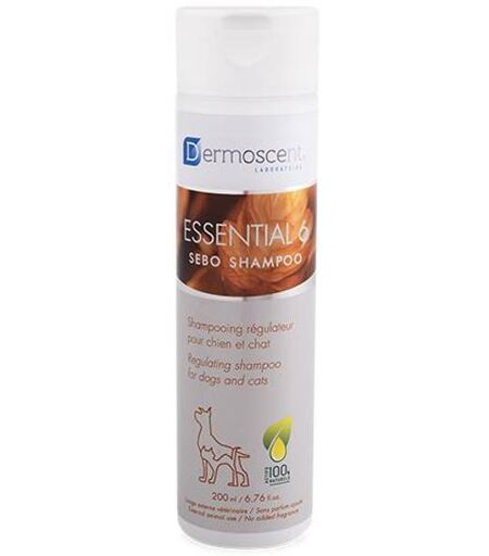 DERMOSCENT ESSENTIAL 6 SEBO SHAMPOO ( 200 ml )Regulerer huden ved sykdom/tilstand som gir fet/tørr hud- og pelsDermoscent Essential 6 sebo sjampo hund og katt er en regulerende sjampo som gir en effektiv rengjøring ved ubalanse i huden. Dette kan for eksempel være kerato-seborreiske lidelser eller problemer, som kan gi matt eller sprøtt hår, tørr eller fet pels, dårlig lukt med mer. Den rengjør forsiktig, reduserer flass og gjenoppretter balansen i hud og pels. Produktet er laget med den samme synergien av eteriske oljer som Dermoscent Essential 6 spot on-serien, samt med den eteriske oljen fra bredbladet papirbark. Sjampoen er rik på de essensielle fettsyrene omega-3- og -6, utvunnet fra planter. ...