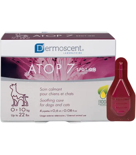 ATOP 7® spot-on inneholder utelukkende ingredienser av naturlig opprinnelse for å fremme kutan barrierereparasjon og bidra til å berolige irritert eller allergisk utsatt hud:- Hud utsatt for kløe- Irritasjon, rødhet- Overfølsomhet ...