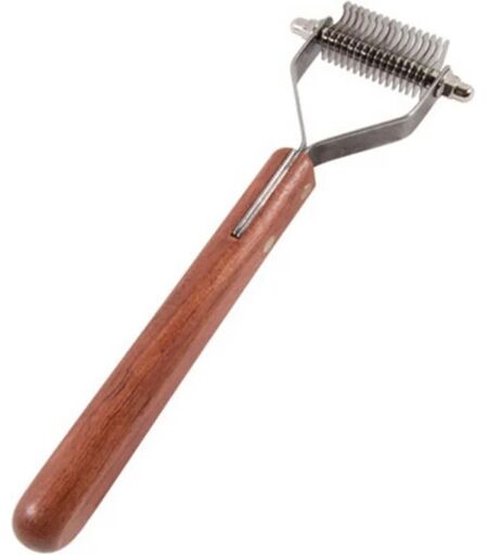 Ideal Dog Coat Prince Trimmeskrape Ideal Dog Coat Prince Trimmeskrape er utstyrt med blad av rustfritt stål og trehåndtak som er behagelig å holde i, noe som gjør grooming-økten både effektiv og behagelig. Denne trimmeskrapen er tilgjengelig i flere ulike modeller for å passe ulike typer pelser og raser. (Veldig sparsommelig pels): Med 8 blader, perfekt for grov og stiv pels som hos schnauzere. (Sparsommelig pels): Med 10 blader, utmerket for lang og tykk pels som hos shetland sheepdog, alaskan malamute og akitas. (Middels tett pels): Med 12 blader, passer bra for hunder med tykk pels som golden retrievere, border collier og schæferhunder. (Tett pels): Med 16 blader, designet for terriere og andre langhårete hunder med tykk pels. (Ekstra tett pels): Med 20 blader, egner seg for en mengde raser, inkludert de med myk, lang eller kort pels. Denne varianten er spesielt bra for spanieler og settere (Supertett pels): Med 26 blader, passer for myk og lang pels samt svært kort pels. ...