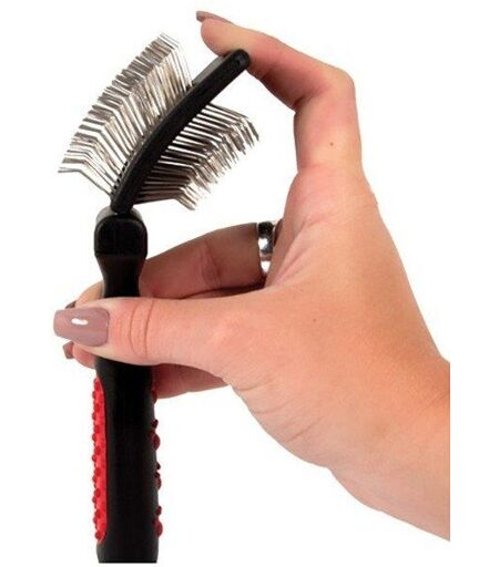 Ideal Dog Karde til Hund Ideal Dog Karde til Hund er en dobbeltsidig børste som egner seg for alle slags pelstyper på både hunder og katter. De bøyde og fleksible børstehårene av rustfritt stål er designet for å være skånsomme mot både pels og hud. Børsten har to sider, en myk og en middels hard– en for å rede ut floker og en for å fjerne underull. Modellen er tilgjengelig i to forskjellige størrelser. Egenskaper: ? Doble sider: en side er myk og den andre hardere for ulike groomingbehov. Materiale: bøyde og fleksible rustfrie stålpigger. Håndtak: ergonomisk og sklisikkert gummibelegg for sikkert grep Størrelser: S: Bredde 5 cm, pigglengde 2 cm L:Bredde 7 cm, pigglengde 2 cm ...