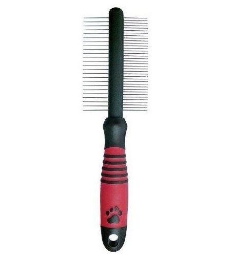 Ideal Dog Kam Tosidig 21,5 cm Ideal Dog Kam Tosidig 21,5 cm er en allsidig og ergonomisk kam spesielt tilpasset for pelsen til både hunder og katter. Denne kammen er perfekt for å rede ut floker på en effektiv måte og vedlikeholde en sunn pels. Kammen har et tosidig design som gjør det mulig å starte med den ene siden som har færre pigger for å løse opp tover og større floker. Når de større flokene er løsnet opp, bruker du den andre siden med tettere pigger for å finkjemme pelsen, noe som gir et glatt og velpleid resultat. Egenskaper: ? Ergonomisk håndtak: Designet med et non-slip håndtak som gir et fast og behagelig grep ved bruk. Lengde: Totallengde på kammen er 21,5 cm, med pigger som måler 2,5 cm. Tosidig funksjon: Sparsommelige og tette pigger på hver sin side for en allsidig pelspleie. ...