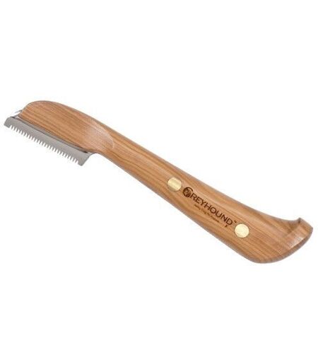 Ideal Dog Greyhound Trimmekniv Ideal Dog Greyhound Trimmekniv er en trimmekniv spesielt designet for å være enkel og behagelig å bruke takket være det ergonomiske trehåndtaket, som gir trimmekniven et stødig grep og reduserer belastningen på håndleddet under lengre trimmeøkter. Denne trimmekniven er utformet for å fjerne den døde pelsen på en effektiv måte uten å skade dekkhåret, noe som er avgjørende for å opprettholde pelsens kvalitet og helse. Trimmekniven er tilpasset for høyrehendte.Tre størrelser tilgjengelig: Veldig tett: 36 tenner, perfekt for hunder med veldig tett underull. Tett: 26 tenner, perfekt for hunder med normal til tett underull. Medium: 18 tenner, egner seg for hunder med mindre underull. ...