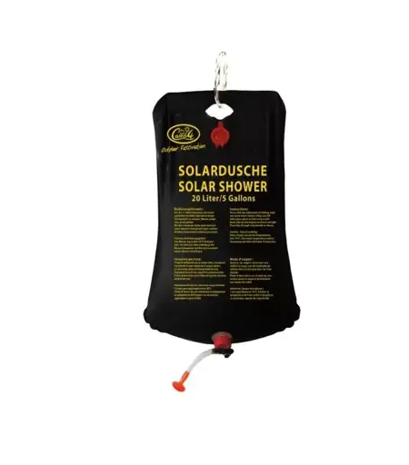 Bærbar, sammenleggbar dusj. Solen varmer opp vanninnholdet til ca. 30°C på 2 til 3 timer. Lukking på toppen og ved dusjhodet. Med opphengsanordning. Kapasitet ca. 20 liter. . ...