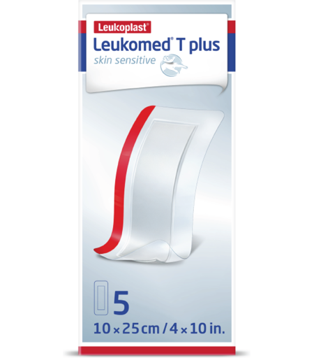 Leukoplast Leukomed T-Plus Skin Sensitive Filmbandasje, 10 cm x 25 cm, 5 stk.