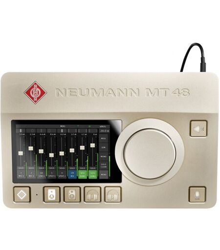 Neumann MT48 er det aller første USB-lydgrensesnittet fra Neumann. Neumann har en lang historie med å designe og bygge lydutstyr og MT48-lydgrensesnittet har den samme førsteklasses kvaliteten de er kjent for i et praktisk lydgrensesnitt for skrivebordet. Neumann MT48 er lastet med klasseledende konvertering som leverer et forbløffende bredt dynamisk område på opptil 136 dB og høres ganske enkelt utrolig ut. To høykvalitets mikrofonforforsterkere med kombinasjonskontakter to rene klare instrument/linjeinnganger og fire linje/monitorutganger gir dette grensesnittet et fleksibelt bruksområde i både hjemme- og profesjonelle studioer. Dette grensesnittet tilbyr også en enorm mengde utvidelsesmuligheter via ADAT- S/PDIF- og AES67-kontakter. Den har også et integrert MIDI-grensesnitt for bruk av DAW-kontrollere keyboard og annen musikkproduksjonsmaskinvare. Neumann MT48 tilbyr også berøringsskjermkontroll med opptil fire separate monitormikser med volum- og panoreringskontroller. Dette grensesnittet er lastet med Custome DSP-effekter inkludert en fire-bånds parametrisk EQ dynamikkbehandling (gate komprimering og begrensing) på hver kanal samt profesjonell reverb i studiokvalitet. ...