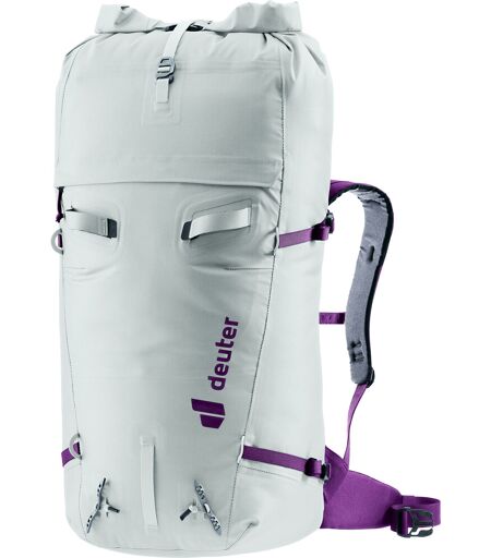 Women's Durascent 42+10 SL er en vanntett ryggsekk for dame. Den er for fjellklatring med et design som gjør det mulig å bruke en klatresele uten at noe er i veien. Med smart plasserte stropper kan ski festes på sidene, noe som gjør ryggsekken allsidig. Lettvekt Justerbart brystbånd med signalfløyte Frontlomme med glidelås Nøkkelklemme Innpakningsbart hoftebelte Roll-top Feste for isøks SOS-etikett Fasteløkker for hjelmholder (hjelmholder er ikke inkludert) Lastjusteringsbånd Komprimeringsbånd Vanntett PFAS-fri Vanntett ...