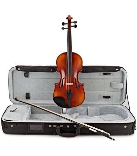 Laget av eksperter. Konstruert for nybegynnere. Gewa Ideale VL2-fiolinen er et enestående instrument som er verdt å bli begeistret over. Laget av solide europeiske tonetrær med middels flammer på ryggen ser Ideale-fiolinen like bra ut som den høres ut. Det er uvanlig å få et håndlakkert instrument i denne prisklassen. Men GEWA har gjort det mulig! Ideale VL2-fiolinen har en rødbrun naturlig harpikslakk og når du først har kombinert den med tilbehøret av ibenholdt vil du innse hvor bra denne fiolinen ser ut. For å sikre at du får en best mulig start har GEWA laget denne pakken slik at den inkluderer alt du trenger. På fiolinen finner du Thomastik Alphayue strenger og et Wittner finjusterende strenholder slik at du kan begynne å lære det grunnleggende om stemming. Ideale-fiolinen inkluderer også en avlang koffert kolofonium og en karbonbue med naturlig hår. ...