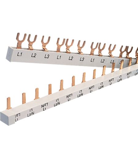 Samleskinne gaffeltilkobling til Ge automater, GE jordfeilautomater 2 moduler type DPCA og Gewiss jordfeilautomater. G2-L/16 skinne 2P 16mm². Lengde: 1 meter. Antall moduler: 56. Vi er etter Forskrift om elektrisk utstyr § 21 pliktig til å informere våre forbrukere at installasjonsmateriell ment for å kunne inngå i et fast elektrisk anlegg kan kun installeres av en registrert installasjonsvirksomhet. Unntatt er elektrisk materiell som utelukkende er ment for bruk i faste teleinstallasjoner, og elektrisk materiell som forbruker selv lovlig kan installere. ...