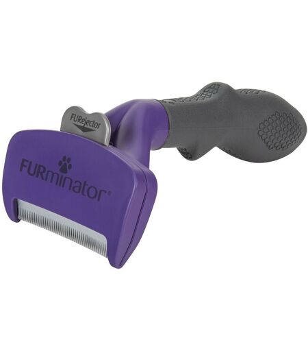 Egenskaper Furminator har et blad i rustfritt stål som forsiktig drar bort underpels og løst hår men etterlater overpelsen uskadd og blank. Det er løs underpels som er årsaken til røyting. Bruk Alle typer lang pels Stimulerer blodomløp og hårvekst, noe som fører til en friskere og blankere pels Reduserer mengden allergener (framkaller allergi hos enkelte mennesker) Bruksanvisning Forsirke deg om at pelsen er ren og tørr. Oppnå best mulig resultat ved å bruke Furminator etter at du badet og tørket pelsen. Sett kanten og tennene på Furminator mot pelsen, og dra den sakte medhårs gjennom pelsen. Unngå gjentattkjemming på samme sted, og vær ekstra forsiktig rundt følsomme områder som magen, bena og kjønnsorganet. Ikke bruk makt på verktøyet når du kjemmer gjennom pelsen. Altfor dyp og hard børsting kan forårsake rødhet og irritasjoner i huden. Furminator kan forårsake store mengder løs pels, og bør derfor brukes på et sted som er lett å rengjøre. Furminator skal kun brukes på røytende raser. Hvis du er i tvil, bør du kontakte veterinæren for å finne ut om rasen røyter eller ikke. ...