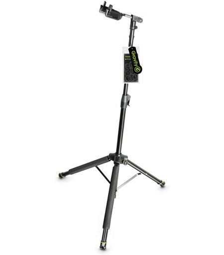 Gravity GGS01NHB sammenleggbar gitarstativ er en pålitelig og passende design som kan romme en rekke modeller og instrumenter inkludert elektriske akustiske og bassgitarer. Takket være dens nakkeklemmeteknologi gir dette Gravity -stativet to svingbare armer med polstrede pads som låser gitaren din sikkert på plass og holder den beskyttet. Når gitaren løftes utløses låsen automatisk og gir deg en rask handling for enkel tilgang. GGS01NHBs solide og pålitelige konstruksjon betyr at den er perfekt for livet på veien i studio eller rett og slett hjemme. Ved siden av standen din mottar du også Gravity skinnende grønne G-Rings som gir en levende estetikk på scene og en pakke vanta-svarte ringer for et mer subtilt og stilig utseende. I tillegg selges det separat ti forskjellige fargede ringer perfekt for å tilpasse standen din til å matche showets visuelle musikksjanger eller personlige preferanser. Oppbevar gitaren din med stil. ...