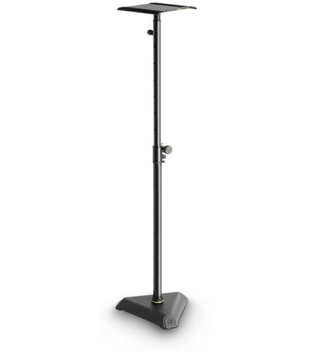 Gravity GSP3202VT Vari-Tilt Studio Monitor Speaker Stand gir en solid isolert montering for skjermer som passer for en rekke miljøer. En kraftig støpejerns triangulær base holder hele stativet stødig og forhindrer rocking mens 25 cm x 25 cm stålskuff øverst på stativet er utstyrt med isolerende skumstøtter for høyttaleren din og kan justeres med variabel helling på opp til 10 grader. Stativet er høydejusterbart fra 90cm til 150cm slik at du kan finne den perfekte høyttalerposisjonen. Inkludert med Gravity GSP3202VT er pigger som raskt og enkelt kan legges til stativets store gummifødder for utrolig akustisk kobling og isolasjon. ...