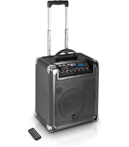 LD Systems RoadJack 10 PA System er et 10-tommers aktivt 2-veis system som gir deg muligheten til å ta lyden din hvor som helst med innebygde hjul og et uttrekkbart håndtak for enkelhets skyld når du reiser. RoadJack 10 har en klasse D-forsterker med frekvensområde på 65 Hz - 18 kHz og 100 watt toppstrømutgang. Denne høyttaleren er komplett med en integrert mikser Bluetooth og et oppladbart batteri noe som betyr at du alltid har muligheten til å levere utrolig lyd uansett hvor du er. ...