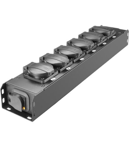 En kompromissløs tilgang til strømfordeling. Adam Hall Proport IP54 Nominell Power Strip er en høykvalitets og pålitelig strømkabel noe som gir enkel strømforsyning til enhver tid. IP54-klassifiseringen betyr at pluggene er beskyttet mot støvinntak og vanndamp fra hvilken som helst retning. Strømstripen passer ikke i et 19-tommers format men er enkelt å montere i flyvesker eller andre installasjonspunkter med en rekke skruehull og to kvinnelige M10-tråder. ...