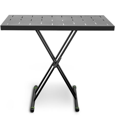 Sliter du med å finne riktig stativ for utstyret ditt? Det er ikke alltid like lett. Men med Gravity GKSRD1 Rapid Desk kan du konvertere hvilket som helst keyboardstativ i X-stil til et solid multifunksjonelt stativ. Denne robuste støtteplaten har en ventilert design noe som gjør den ideell for elektrisk utstyr som genererer varme når det er i bruk. Enten det er en bærbar PC DJ-kontroller mikser eller annen enhet kan du være sikker på at utstyret ditt vil forbli kult i løpet av showet. Det er enkelt å sette opp GKSRD1 også. Det er ikke behov for skruer bolter eller ekstra hardware. Bare plasser skrivebordet på toppen av X-Form-stativet og skyv stativets øvre bjelker inn i sporene på bunnen av skrivebordet. Så alt du trenger å gjøre er å åpne X-stativet. Det er så enkelt. ...