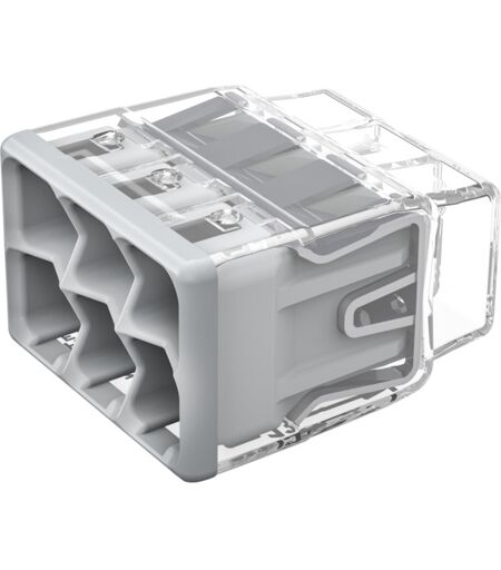 Innstikklemme 6x4mm², transparent. Vi er etter Forskrift om elektrisk utstyr § 21 pliktig til å informere våre forbrukere at installasjonsmateriell ment for å kunne inngå i et fast elektrisk anlegg kan kun installeres av en registrert installasjonsvirksomhet. Unntatt er elektrisk materiell som utelukkende er ment for bruk i faste teleinstallasjoner, og elektrisk materiell som forbruker selv lovlig kan installere. ...