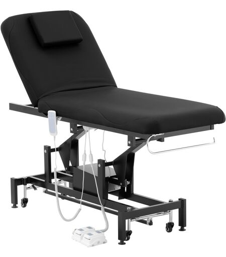 For fysioterapeuter, massasjeterapeuter og kosmetologer er det høydejusterbare elektriske massasjebordet fra physa det ideelle utstyret for ditt kontor, studio eller spa- eller velværebedrift. Designet, ulike funksjoner inkludert ryggstøttens justerbare skråningsvinkel og de ergonomiske kriteriene er ideelt balansert mellom behovene til klienten og terapeuten. Avslapping og en komfortabel stilling for ryggen er garantert. Dette bordet skiller seg ut for sin robuste konstruksjon med god stabilitet og er utstyrt med fjernkontroll samt papirrullholder. Det elektriske massasjebordet har to motorer med en total effekt på 200 W og kan justeres individuelt i høyden på 680-900 mm med den håndholdte fjernkontrollen. I tillegg kan ryggstøtten også vippes automatisk med 60° slik at du alltid kan finne den beste posisjonen for kundene dine og deg selv. Avhengig av type behandling kan du velge enten sittende eller liggende stilling. Hodestykket har en avtagbar pute. På grunn av de forskjellige tykkelsene på skumfyllet til puten (73 mm) samt det behagelige syntetiske skinntrekket, er massasjebordet ekstremt behagelig og sikrer høy komfort under bruk. Imitert skinn gjør massasjebordet raskt og enkelt å rengjøre. Trekket i imitert skinn er både væske- og støvbestandig. Pulverlakkert metall av høy kvalitet og den robuste konstruksjonen sikrer robustheten til dette elektriske massasjebordet og har en maksimal lastekapasitet på 200 kg. Ved behov kan fire hjul brukes til å flytte massasjebordet. Holdere til fjernkontrollen og papirrullen gir ekstra bekvemmelighet. ...