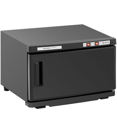 Håndklevarmeren fra physa er ideell for spa-, skjønnhets- og massasjesalonger. Tilby kundene dine koselige varme håndklær som oppfyller de hygieniske standardene til skjønnhetsstudioet ditt takket være UV-sterilisering. Med sin klassiske og diskrete design integreres håndkletørkeren upåfallende i ethvert salonginteriør og vil garantert bli en rask favoritt i studioet ditt. Spa-håndklevarmere garanterer den lille ekstra luksusen i kosmetikk- og velværesektoren som mangler i hverdagen. De forhåndsoppvarmede håndklærne gjør behandlinger og massasjer ikke bare mer behagelige, men også mer effektive. I tillegg til en dypere restitusjons- og regenereringseffekt, sikrer den varme håndklevarmeren fra physa også en høy standard på hygiene. Enheten har en 6 W UV-lampe som holder interiøret bakteriefritt og oppfyller dermed de høyeste standarder for renslighet. Det varme håndkleskapet sikrer varme håndklær og komprimeres raskt og effektivt med sin 230 W-effekt. Enheten varmes opp til en temperatur på 70 °C – optimalt for de fleste behandlinger. Hvis du vil ha et varmere resultat, lar du bare håndklærne ligge i den varme håndklevarmeren lenger. Enhetens kompakte mål sikrer at den passer inn i enhver kosmetikk- eller skjønnhetssalong, spa eller massasjesalong. Ikke desto mindre, med en kapasitet på 16 L og dimensjoner på 350 x 275 x 130 mm, tilbyr interiøret nok plass til å lagre og varme opp et stort antall håndklær samtidig. Den kompakte enheten er perfekt for nesten alle virksomheter innen skjønnhets- og velværesektoren. Med beskyttelsesklasse I oppfyller håndkletørkeren alle gjeldende sikkerhetskrav og garanterer jevn og farefri drift. Det robuste stålhuset og innsiden i rustfritt stål er enkle å rengjøre. De to gummiføttene hindrer enheten i å skli. I tillegg er det satt høyest pris på kvalitet i både materialer og utførelse, slik at du drar nytte av en enhet med lang levetid. ...
