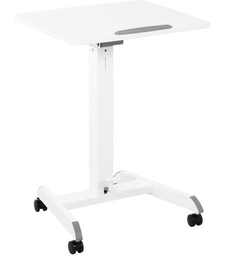 Skap en mobil og komfortabel arbeidsstasjon med laptop-pulten fra Fromm & Starck. Den er like kompakt som en bærbar datamaskin og gir den perfekte overflaten for det viktigste verktøyet ditt. Takket være den belagte benkeplaten er oppbevaringsflaten på skrivebordet ekstremt motstandsdyktig. Ofte er alt du trenger et passende sted for den bærbare datamaskinen å stå ved siden av deg, enten under en presentasjon, i et laboratorium eller på et verksted. Du kan også bruke den som en mobil arbeidsstasjon på kontoret eller i et møte – det mobile bærbare skrivebordet kan tilpasses enhver situasjon. Det høydejusterbare bærbare bordet har en stor overflate som måler 60 x 52 cm, og gir plass til selv store bærbare datamaskiner eller projektorer. Du kan enkelt justere høyden fra 825 - 1185 mm for en optimal arbeidsstilling. Den solide belagte stålkonstruksjonen og den 16 cm tykke benkeplaten garanterer en lastekapasitet på opptil 8 kg. De fire hjulene sørger for maksimal mobilitet, slik at du kan skyve den bærbare datamaskinen hvor som helst du trenger den. Takket være de fleksible egenskapene er skrivebordet ikke bare egnet for bruk som kontormøbler, men også som bord over sengen eller servicebord. Arbeidsflaten kan vippes mellom 0 og 30°, slik at bordet kan tilpasses optimalt til omgivelsene eller, om nødvendig, stues bort for å spare plass. ...