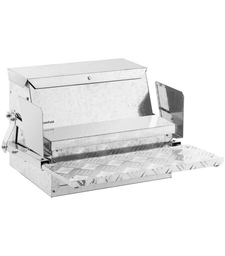 Den automatiske fôrautomaten WI-CF-150 er et ypperlig verktøy for en større fjærkreproduksjon eller til de som har det som hobby. Forautomaten beskytter foret mot urenheter og gjør at høns spiser det de skal. Effektiviser ditt arbeid innen fjærkre med Wiesenfield sitt utstyr for landbruk. Det galvaniserte stålet beskytter foret mot vind og vær som gjør at det alltid er ferskt og tørt. Med et volum på 11,5 kg har høns nok for til å spise i lang tid så en slipper å fylle beholderen hele tiden. Forautomaten åpner seg når høns trår på brettet med trinnene. Brettet aktiveres når høns på over 400 g trår på dette. Dette gjør at den nødvendige mengden med for kommer ut. Ytterligere sørger dette også for at ville dyr ikke har adgang. Hvis det ikke trår høns på brettet vil dispenseren forbli lukket. Trinnbrettet er laget av aluminium. Aluminium reduserer risikoen for at fjærkre sklir og dermed kan de fores uten å være stresset. Designet er gjennomtenkt som gjør at det er lite svinn av for. Dette holder også fôringsområdet rent og tiltrekker seg ikke ville fugler eller andre dyr. ...