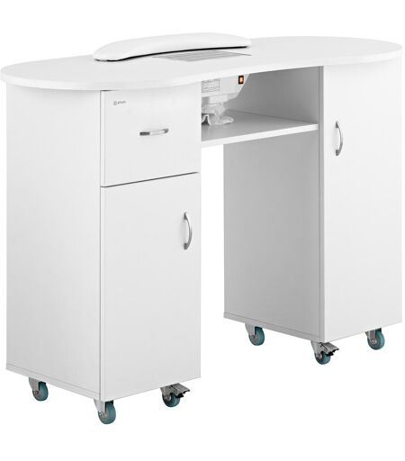 physa Manikyrbord - 1.200 x 503 x 803 mm - hvit - 8 hjul - med støvavsugningssystem og håndstøtte 10040450