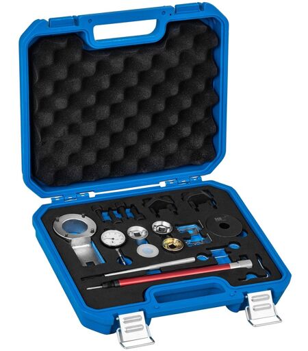 For reparasjon av VAG 1.8 TSI / TFSI eller en 2.0 TSI / TFSI motor: Med motortimingverktøyet fra MSW, ekspertene for høykvalitets bilverktøy, kan du sjekke motortimingen og utføre reparasjoner. Med motorjusteringsverktøyet kan du utføre komplisert arbeid på forskjellige bilmodeller. Dette profesjonelle verktøyet er optimalt tilpasset de tilsvarende motorelementene og er derfor lett å bruke. Låseverktøysettet garanterer den mest effektive metoden for fiksering og justering av motoren. Arbeid med andre kommersielt tilgjengelige verktøy kan skade motordeler i tillegg til skade på brukeren. MSW-verktøysettet har også svært lave slitasjenivåer. Høykvalitetsverktøyene i leveransen inkluderer justeringsverktøy for kamaksel, veivaksel, låsepinne for oljepumpe, låseverktøy for to tannhjul, låseklips for kjedestrammer og mange andre verktøy. Verktøyene er i stor grad laget av seigt og slitesterkt karbonstål og vil vare i mange år. De er et must i ethvert profesjonelt bilverksted eller hobbygarasje. Og når du går til kunden med kamakseltimingverktøysettet eller når det ikke er i bruk, kan du enkelt oppbevare alt verktøyet pent og trygt i de nøyaktig tilpassede fordypningene i den solide transportkofferten i plast. Slik har du alltid orden på verkstedet og alt for hånden så snart verktøyene trengs. For VAG 1.8 TSI / TFSI eller 2.0 TSI / TFSI-motorer eller følgende motorkoder: BYT, BZB, CABA, CABB, CABD, CADA, CAEA, CAEB, CAWA, CAWB, CBFA, CCTA, CCZA, CCZB, CCZC, CCZD, CDAA, CDAB, CDHA, CDHB, CDNB, CDNC, CDND, CESA, CETA, CFKA, CFPA, CGYA, CHHA, CHHB, CJBA, CJEB, CJKA, CJKB, CJSA, CJSB, CNCD, CPLA, CPSA ...
