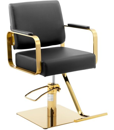 Skap en komfortabel plass for kundene dine med Otley Black frisørstol og legg til et stilig preg på salongen din. Den diskrete designen i svart og gull passer inn i ethvert miljø. Frisørstolen med fotstøtte og polstret ryggstøtte vil glede deg og dine gjester med maksimal komfort - enten det er i frisørsalongen, tatoveringen eller skjønnhetssalongen. Dine kunder vil være ekstremt komfortable på den ergonomiske frisørstolen. Dette sikres av de høye armlenene og det høykvalitetsskummet som fungerer som møbeltrekk. Den er myk og holder formen. Det slitesterke imiterte skinntrekket er enkelt å rengjøre og har også støv- og vannavstøtende egenskaper. Du kan enkelt justere høyden på frisørstolen mellom 50 - 66 cm med en hydraulisk pumpe. I tillegg dreier du bare stolen til den posisjonen du jobber best fra. På denne måten kan du alltid oppnå en optimal arbeidsstilling med bare noen få enkle trinn, slik at du ikke blir sliten selv på lange dager. Rammen til frisørstolen er laget av robust og elegant rustfritt stål. Den robuste konstruksjonen tåler trygt en belastning på 200 kg og gir stolen støtte i tillegg til stor slitestyrke. Den store basen 45 x 45 cm gir ekstra stabilitet. De gullbelagte overflatene i rustfritt stål understreker det stilige designet. ...