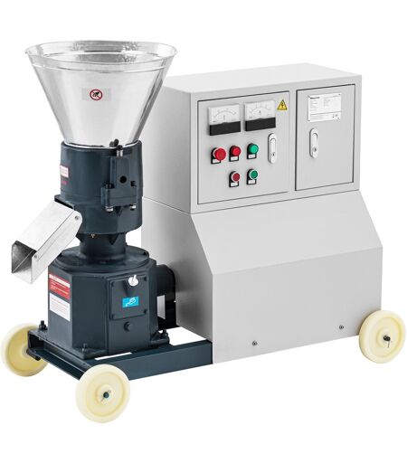 Du mater, gjødsler eller varmer med pellets? Med Wiesenfield pelletsmølle kan du produsere opptil 300 kg fôrstaver i timen. Eller du behandler flis, opptil 120 kg/t. Hva skal i gjødselstavene dine, hva i fôrgranulatet? Bestem selv hvilke vitaminer og mineraler du tilsetter mais, havre eller høy. Eller du kan lage pellets av sagflis og fyre i ovnen på en miljøvennlig måte. Hvordan virker det? Du varmer opp pelletspressen til 60 til 80 °C med en vakuumvarmebehandling. Dette gjør at overflatene verken skades eller deformeres under oppvarming. Fyll nå ut massen du vil trykke. Deretter skyver en solid valse innholdet gjennom en dyse med 200 mm diameter. Resultatet: fast komprimerte, slitesterke pellets med en diameter på 6 mm. Hvis du vil produsere pellets med en annen diameter, trenger du andre dyser. Bruk den praktiske utkasteren til å fylle de ferdige pellets direkte i poser. Styreskapet er oversiktlig og kan betjenes intuitivt. En nødstoppbryter sørger for sikkerhet. Pelletsmaskinen fungerer med en 7500 W elektrisk motor og er mobil takket være fire solide hjul. Aggregatet drives med 400 V høyspenningsstrøm og leveres uten tilkoblingsstøpsel. Merk: Bestill bindemiddel for pellets samtidig (varenr.: 10530000). Hvetestivelsespulveret gjør det lettere å presse og lagre pellets. Merknad om slitedeler: De innebygde dysene og valsene for pelletspresser kan brukes i opptil 300 timer. Hvis de er utslitte, skift dem ut umiddelbart. Slitedeler dekkes ikke av garantien. For passende reservedeler, kontakt expondos kundeserviceavdeling. ...