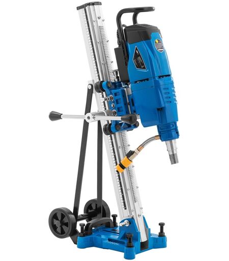 På byggeplassen er tid penger. Kravene til maskinene som brukes er tilsvarende høye. Med kjerneboret fra MSW craft supplies-serien kan du pålitelig bore hull i harde byggematerialer som betong, mur eller asfalt. For å gjøre dette bruker du en borerigg med styreskinne som tillater selv store hull med en diameter på opptil 350 mm. Med kjerneboret har du tilgang til en effekt på 3700 W og en maksimal hastighet på 610 rpm for kjerneboring opp til en diameter på {{max_portable_drill_diameter}} mm. Kraften varierer avhengig av materialet: i sement kan du for eksempel bore diametre på opptil 210 mm. Takket være styreskinnen på stativet kan du oppnå presise resultater opp til en dybde på ≤610 mm. Bruk tre effektnivåer for optimale resultater, bruk bor med den største diameteren ved laveste hastighet. Når du borer, stol på pålitelig vannkjøling. En tilkobling er direkte integrert i enheten. Dette reduserer slitasje på borkronen, reduserer vedlikehold på elektroverktøyet og øker levetiden. For å utføre service på kullbørstene, fjern ganske enkelt beskyttelsesdekselet. Bruk diamantkjernebor med forskjellige diametre, som du kobler sikkert til verktøyet via holderen. Med kjerneboret kan du arbeide i armert betong, sement, mur, asfalt og naturstein. Den 3,5 m lange strømkabelen gir deg maksimal bevegelsesfrihet. Takket være reststrømbeskyttelseskretsen (PRCD - Portable Residual Current Device) integrert i kabelen, bruker du alltid enheten trygt. Hvis det er en kortslutning i området til kjerneboret eller kabelen, stopper operasjonen umiddelbart. ...