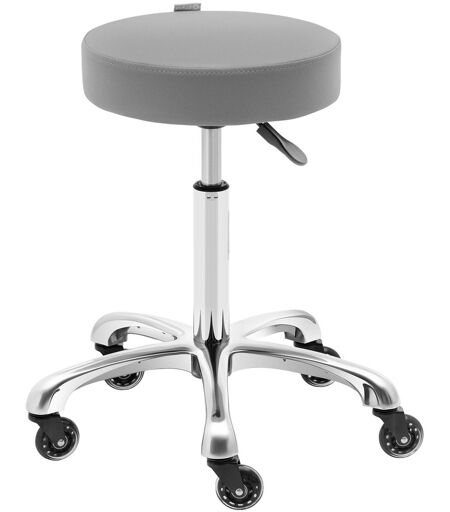 Er arbeidet ditt i en frisørsalong, skjønnhetssalong, kontor eller legemottak variert? Velg den fleksible WORCESTER DARK GRAY-krakken med hjul. Enten du sitter kort eller lenge, vil du alltid finne den beste stillingen for ditt arbeid. Dens funksjonelle design og det diskrete fargevalget i delikat mørkegrå vil passe perfekt inn i salongen din. Velg denne variable skjønnhetskrakken for å fungere i din mest avslappede tilstand. WORCESTER DARK GRAY gir deg mange nyttige detaljer. På de fem jevntgående hjulene kan du ta den med dit du trenger den. Med en gassfjær kan høyden på rullekrakken justeres fra 540 - 720 mm. På denne måten er den alltid i den perfekte posisjonen når du har en avslappet holdning. Om nødvendig kan du rotere krakken 360° rundt sin egen akse. Du kan sitte komfortabelt på det polstrede setet med en diameter på 350 mm, selv over lengre perioder. Krakken er imponerende med sin robuste konstruksjon, som du kan laste med opptil 150 kg. Jobber du med væsker eller støvete stoffer? Materialene som brukes, som PVC-syntetisk lær og aluminiumslegering, gjør rengjøringen til en lek. I tillegg er trekket på setet støv- og vannavstøtende, noe som gjør at den ergonomiske krakken blir mindre skitten selv under arbeid. ...