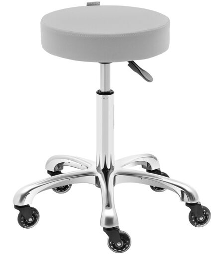 Er arbeidet ditt i en frisørsalong, skjønnhetssalong, kontor eller legemottak variert? Velg den fleksible WORCESTER LIGHT GRAY-krakken med hjul. Enten du sitter kort eller lenge, vil du alltid finne den beste stillingen for ditt arbeid. Dens funksjonelle design og diskrete fargevalg i delikat lysegrå vil passe perfekt inn i salongen eller praksisen din. Velg denne variable skjønnhetskrakken for å fungere i din mest avslappede tilstand. WORCESTER LIGHT GRAY gir deg mange nyttige detaljer. På de fem jevntgående hjulene kan du ta den med dit du trenger den. Med en gassfjær kan høyden på rullekrakken justeres fra 540 - 720 mm. På denne måten er den alltid i den perfekte posisjonen når du har en avslappet holdning. Om nødvendig kan du rotere krakken 360° rundt sin egen akse. Du kan sitte komfortabelt på det polstrede setet med en diameter på 350 mm, selv over lengre perioder. Krakken er imponerende med sin robuste konstruksjon, som du kan laste med opptil 150 kg. Jobber du med væsker eller støvete stoffer? Materialene som brukes, som PVC-syntetisk lær og aluminiumslegering, gjør rengjøringen til en lek. I tillegg er trekket på setet støv- og vannavstøtende, noe som gjør at den ergonomiske krakken blir mindre skitten selv under arbeid. ...