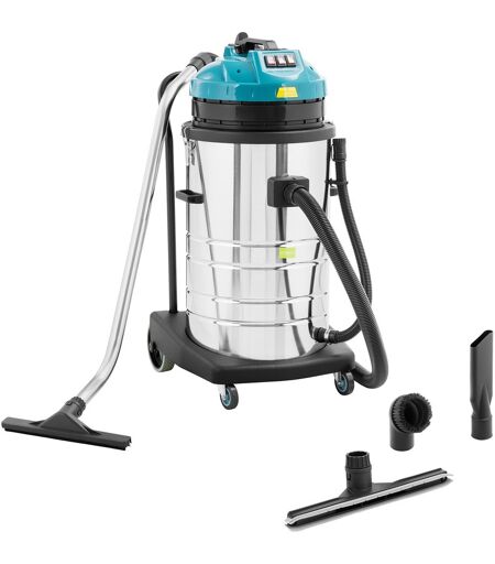 Med den våte og tørre støvsugeren fra ulsonix kan du grundig og raskt fjerne gjenstridig smuss fra en lang rekke overflater. Industristøvsugeren rengjør ikke bare tørre gulv, men også fuktige overflater og er derfor ideell for bruk i handel og industri eller for effektiv rengjøring av kontor- og forretningslokaler. Takket være dens 3000 W og ulike tilbehør (tørrmunnstykke, våtdyse, sprekkmunnstykke og støvbørste), klarer våtstøvsugeren de tøffeste oppgavene. Du kan også enkelt tilpasse den til ulike utfordringer ved å bruke de tre separat valgbare effektnivåene på 1000 W, 2000 W og 3000 W. Med et volum på 80 l fullfører enheten enkelt flere arbeidssykluser uten å ha for å tømme den slitesterke beholderen i rustfritt stål i mellom. Den ergonomisk utformede enheten er også fleksibel og enkel å håndtere: Utstyrt med fire hjul, et bærehåndtak og 5 m målestrømkabel, er våt- og tørrstøvsugeren veldig behagelig å jobbe med. Med den 2.5 m lange slangen kan du også pålitelig rengjøre vanskelig tilgjengelige områder eller frigjøre dem fra væsker eller gjørme. Selve rengjøringsprosessen er knapt noe arbeid for den våte og tørre støvsugeren. Stofffilterposen beskytter enheten pålitelig. Etter å ha fjernet væsker kan du enkelt tømme dem med en fleksibel plastslange i bunnen av tanken. ...