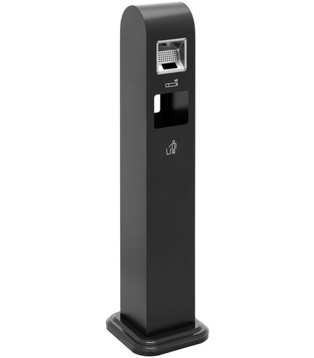 Strøede sigarettsneiper? Søppel som ligger rundt omkring? Det stående askebegeret med avfallsbeholder fra ulsonix gir et middel og garanterer et rent røyke- eller inngangsparti til offentlige bygninger, restauranter eller kontorer. Enkelt oppsett og med tydelige piktogrammer gjør det det enklere for besøkende, gjester eller ansatte å kaste sigaretter og annet avfall på riktig måte. Utendørs askebeger er sikret med lås (inkl. matchende nøkkel). Takket være en avtakbar avfallsbeholder laget av lakkert jern kan du tømme askebegeret raskt, enkelt og rent. Med totalmål på 32 x 30 x 120 cm, tilbyr det store utendørs stående askebegeret også en høy kapasitet på 10.8 l, og reduserer dermed tømmingsfrekvensen. Avfallsbeholderen med askebeger for utendørs bruk er laget av rustfritt stål og tåler rust og vær. Men denne modellen i diskret mørkegrå passer også til interiør. Enten innendørs eller utendørs: Det stående askebegeret er garantien for et rent og ryddig røykeområde og et profesjonelt helhetsinntrykk! ...