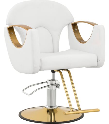 Skap en komfortabel plass for klientellet ditt med Barton White frisørstol og legg til et stilig preg på salongen din. Det diskrete designet i hvitt passer inn i ethvert miljø. Sørg for maksimal komfort for deg og dine gjester med salongstolen med fotstøtte og polstret ryggstøtte – perfekt for frisøren, tatoveringen eller skjønnhetsstudioet ditt. Rammen til salongstolen er laget av robust og elegant rustfritt stål. Den robuste konstruksjonen tåler trygt en belastning på 180 kg og gir stolen stabilitet og høy slitestyrke. For ekstra stabilitet bruker frisørstolen et stort stativ med en diameter på 55 cm gir ekstra stabilitet. De glatte overflatene i rustfritt stål understreker det stilige designet. Dine kunder vil være ekstremt komfortable på den ergonomiske frisørstolen. Dette sikres ved bruk av høye armlener og toppkvalitets skumtrekk. Det slitesterke dekselet i imitert skinn er lett å rengjøre. Utover det utmerker dekselet seg ved å avvise støv og vann. Den hydrauliske pumpen lar deg enkelt justere høyden på frisørstolen mellom 55 - 65 cm. I tillegg kan du enkelt rotere stolen til den posisjonen du jobber best fra. På denne måten kan du alltid oppnå en optimal arbeidsstilling med bare noen få enkle trinn, slik at du ikke blir sliten selv på lange dager. En fotstøtte gir ekstra komfort mens du sitter. ...