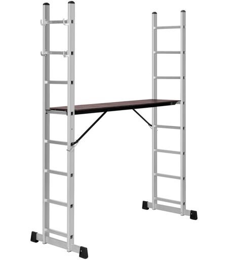 Schließen Sie Ihre Projekte mit dem hochwertigen Leitergerüst von MSW ab. Diese stabile und flexible Lösung bietet Ihnen Sicherheit und Effizienz; die modulare Bauweise ermöglicht Ihnen eine einfache Anpassung an verschiedene Baustellenanforderungen: Som en lenestige stige med en høyde på 2,21 til 3,8 m, som trinnstige med høyde 2,11 m, og som arbeidsplattform med en størrelse på 1,47 x 0,4 m. Diese Flexibilität ermöglicht Ihnen, verschiedene Aufgaben im Innen- und Außenbereich effizient zu bewältigen. Mit einer Tragfähigkeit von 150 kg und einer modularen Bauweise eignet sich das Gerüst ideal für Bau- und Industrieanwendungen. Den sklisikre plattformen og solide rekkverkene sørger for maksimal sikkerhet. Tilpass enkelt aluminiumsstillaset til ulike krav takket være dets intuitive design. Stillasets raske oppsett og demontering hjelper deg å spare tid. Slitesterk og værbestandig, den lette aluminiumskonstruksjonen er bygget for å vare. Invester i MSW-stillasplattformen og optimer arbeidsflyten din. ...