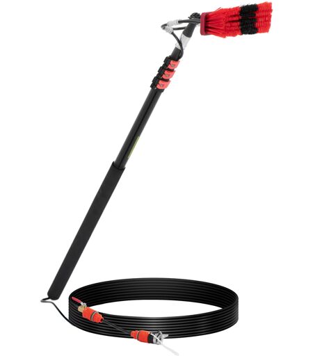 Med den justerbare lengde fra 125 til 360 cm utfører ulsonix sin børste enhver rengjøringsjobb. Den er perfekt for vinduer, solcellepaneler eller glassfasader. De solide klemmene gjør det enkelt å stille inn lengden på den teleskopiske børsten. Aluminiumsdesignet og komfortabelt skumgrep gjør det enkelt å jobbe uten å bli sliten. Den 35 cm brede børsten har myk polypropylenbust som forsiktig sprer vann gjennom fire dyser på delikate overflater som glass eller marmor. Adapteren tillater fleksibel vipping av børstehodet, slik at du kan justere rengjøringsvinkelen for å passe dine behov. Totalt sett imponerer den teleskopiske børsten med sin konstruksjon av høy kvalitet, brukervennlighet og allsidighet. ...