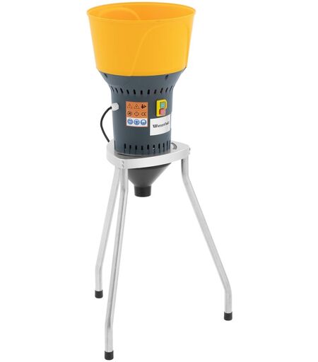 Wiesenfield elektriske kornmølle med base, fem utskiftbare sikter og en60 l tank er den riktige løsningen hvis du behandler innhøstingen selv. Enten hard eller myk hvete, bygg, havre, ris, rug eller annet malemateriale med lavt oljeinnhold: Takket være1300 W kraftig motor, møllen behandler opp til400 kg korn per time - avhengig av valgt sil (2, 3, 4, 6, 8 mm) og slipt materiale. Den elektriske kornkvernen er produsert for profesjonell bruk i landbruket og er spesielt robust. Med en kvern av høy kvalitet, en13,7 l beholder av aluminiumslegering og fem sikter i rustfritt stål, den elektriske kornmøllen er ekstremt holdbar. Den elektriske kornmøllen er enkel og sikker å bruke. Den praktiske tryklåsen forhindrer søl. Den elektriske møllen er også ekstremt slitesterk, oppfyller alle gjeldende sikkerhetsstandarder for beskyttelse mot roterende deler og er en sterk utøver innen profesjonelt landbruk. ...