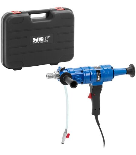På en byggeplass er tid penger. Maskinene du stoler på bør ikke gå til spille. Kjerneboremaskinen fra MSW borer pålitelig hull i harde byggematerialer som betong, murverk eller asfalt. Boret vibrerer knapt i bruk, noe som sikrer presise borehull. Bare pakk kjerneboremaskinen inn i den velorganiserte kofferten og ta den med til byggeplassen, hvor du kan bruke den til presis boring i ethvert scenario. Kjerneboret har 1500 W kraft og en hastighet på 2100 o/min, noe som gjør den egnet for håndstyrt kjerneboring med diametre opptil 102 mm. Takket være det lave energiforbruket kan du også bruke kjerneboret med en strømgenerator. For presise boreresultater, bruk det innebygde vaterpasset og det ekstra sidehåndtaket. Oppnå optimale boreresultater ved å velge fra ulike kraftnivåer, ved å bruke boret med den største diameteren på den laveste hastigheten. Når du borer, stol på et pålitelig vannkjølingssystem. En høykvalitets vanntilkobling av smidd stål er integrert direkte i kjerneboret. Dette reduserer slitasje på borkronen. Dessuten vil maskinen kreve mindre vedlikehold og ha en lengre total levetid. Du vil også redusere støvproduksjonen under boring, og kjerneboremaskinen din vil oppleve mindre varme. Velg maksimal bevegelsesfrihet med den 2,19 m lange strømkabelen. Takket være jordfeilbryteren (PRCD - Portable Residual Current Device) integrert i kabelen, kan du alltid bruke enheten trygt. Skulle det være en kortslutning i boret eller kabelen, opphører driften umiddelbart. ...