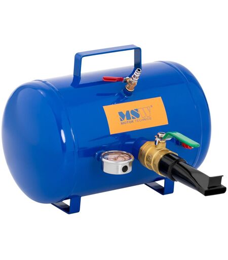 Trekk dekkene på felgene uten mye anstrengelse og fyll dem med luft: Gjør det raskt med dekk-boosteren fra MSW. Dette garasjeutstyret er enkelt å bruke på både store og smale dekk, og viser seg å være en effektiv problemløser selv under vanskelige oppgaver som montering av deformerte dekk. Air-boosteren er en pneumatisk ei maskin for alle standard slangeløse dekk. Den lar deg enkelt montere dekket i liggende eller stående stilling. På grunn av den ukompliserte håndteringen og den kompakte størrelsen på enheten, kan enheten installeres hvor som helst på verkstedet. Den er spesielt designet for sikkert bruk. Lufttilførselen med et arbeidstrykk på 8 bar styres manuelt via en kuleventil og begrenses av en sikkerhetsventil. Du kan overvåke trykket på den nøyaktige trykkmåleren som har en fargeskala. Dette gjør at du kan måle og overvåke alle trykkdata på et øyeblikk. Med en total kapasitet på 19,5 L er dekk-boosteren også perfekt for langvarig bruk i både private og profesjonelle verksteder. Luftkompressoren er laget av pulverlakkert jern og er spesielt ripebestandig, robust og holdbar selv under tøffe forhold. Dekkforsterkeren bør ikke slippes på bakken og bør være uten trykk under lagring eller transport. Dekk og felg skal holdes stabilt under arbeid når det jobbes med trykkluft, enten mot vegg eller underlag. ...