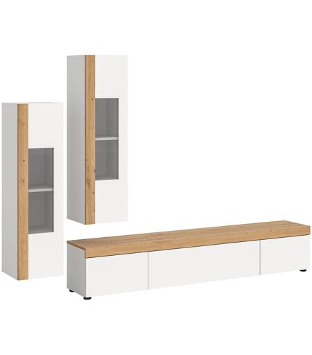 Ruda hylle system 3 deler veghengt eller gulv hvit, eik dekor.