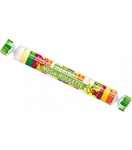 Haribo Mega RouletteSour 45g - Sure vingummi godterier.Ingredienser: Glukossirap; socker; gelatin; syror: vinsyra, citronsyra, äppelsyra; druvsocker; frukt- och plantkoncentrat: safflor, äpple, spirulina, rättika, citron, sötpotatis, morot, svarta vinbär, hibiskus; arom; färgämne: antocyaner; ytbehandlingsmedel: bivax vitt och gult, karnaubavax; invertsockersirapNæringsinnhold pr 100gMengdeEnergi(kcal)338.0 kcalFett0.5 gVarav mättat fett0.1 gKolhydrater77.0 gSocker46.0 gProtein5.7 gSalt0.03 g ...