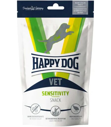 HAPPY DOG VET SNACK - SENSITIVITY / FÔRALLERGIER - 100g• Fjærfe• Glutenfri formulering• Spesielt velsmakende• Lett fordøyelig Veterinærsnack for støtte i tilfeller av matintoleranseEt mellommåltid som utfyller hovedmåltidet er avgjørende, selv for hunder med matallergi. Basert på oppskriften på Happy Dog VET Hypersensitivity-dietten, er den myke VET Sensitivity-snacksen ideell for hunder med intoleranse. Den kornfrie oppskriften på Happy Dog VET Sensitivity-snacks med den eksklusive animalske proteinkilden vaktel og den uvanlige karbohydratkilden italienske søte kastanjer er ideell som snacks som tilbehør til en eliminasjonsdiett med Happy Dog VET Hypersensitivity eller når du fôrer denne dietten permanent.Snacksen er produsert uten tilsatt sukker eller konserveringsmidler, og den gjenlukkbare pakken sikrer langvarig friskhet. Skjem bort din trofaste venn med noe spesielt!Innhold:Derivater av vegetabilsk opprinnelse* (inkludert italienske søte kastanjer* 48 %), vakteprotein* (20 %), hydrolysert protein*, solsikkeolje, natriumklorid*) tørketAnalyse:Råprotein 17,0 %, råfett 8,0 %, råfiber 2,0 %, råaske 6,5 %, fuktighet 14 %Tilsetningsstoffer:Vitaminer/kg:Vitamin A (3a672a) 11000 IE, vitamin D3 (3a671) 660 IESporelementer/kg:Jern (jern (II) sulfat monohydrat 3b103) 40 mg, kobber (kobber (II) sulfat pentahydrat 3b405) 8 mg, sink (sink oksid 3b603) 50 mg, mangan (mangan (II) oksid 3b502) oksid 3b502 jodat, vannfritt 3b202) 1,0 mg, selen (natriumselenitt 3b801) 0,15 mgAminosyrer/kg:DL-metionin (3c301) 700 mg, L-lysin (3c322) 3500 mgAntioksidant, tokoferolrike ekstrakter fra planteoljer 1b306(i) ...
