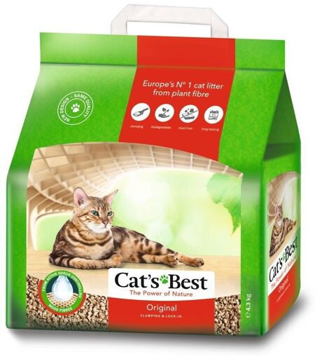 Egenskaper Klumpende kattesand av rent organisk trefiber, med en naturlig og behagelig lukt. Sanden har høy væskebindende kapasitet og binder ubehagelig lukt effektivt. Binder opptil 5 ganger sin egen vekt, og er dessuten 100 % biologisk nedbrytbart. Cat ?s Bets kan spyles rett ned i toalettet. Den behandles som nedbrytbart organisk materiale og blir biogass. Den kan kastes som husholdningsavfall, der den brennes og blir til fjernvarme. Eventuelt kan den komposteres og gjenbrukes som gjødsel. Den er miljøvennlig og fornybar! ...