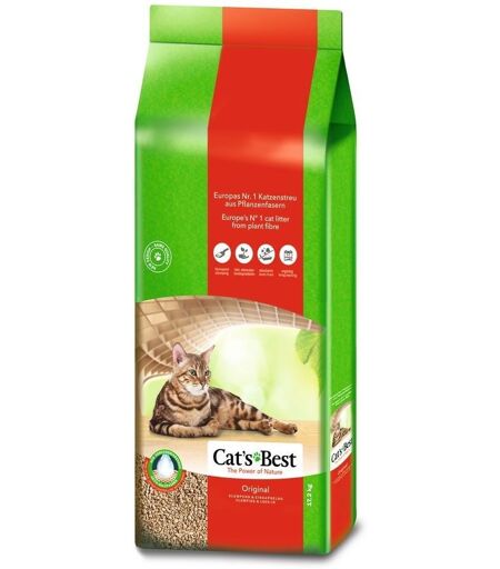 Egenskaper Klumpende kattesand av rent organisk trefiber, med en naturlig og behagelig lukt. Sanden har høy væskebindende kapasitet og binder ubehagelig lukt effektivt. Binder opptil 5 ganger sin egen vekt, og er dessuten 100 % biologisk nedbrytbart. Cat ?s Bets kan spyles rett ned i toalettet. Den behandles som nedbrytbart organisk materiale og blir biogass. Den kan kastes som husholdningsavfall, der den brennes og blir til fjernvarme. Eventuelt kan den komposteres og gjenbrukes som gjødsel. Den er miljøvennlig og fornybar! ...
