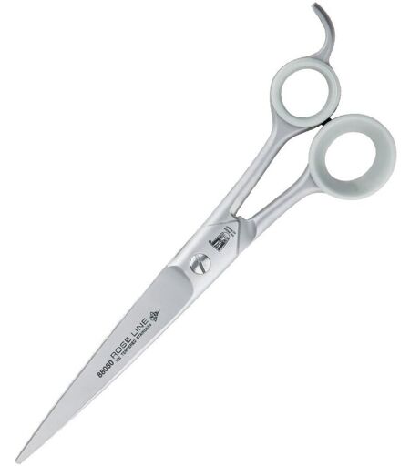 Roseline Hundesaks 88080 8,25" Roseline har laget sakser i mer enn 35 år i Solingen, Tyskland og regnes som en av verdens beste produsenter av profesjonelle groomingsakser . Saksene er moderne med gjennomtenkt design og er svært behagelige å jobbe med. Denne saksemodellen har noe bredere blader for tykke pelser og ullpels, som for eksempel puddel, bichon frisé og Old English Sheepdog. Tommelhullet er ekstra romslig for mer behagelig håndtering. Roseline hundesaks Matt sølvfinish Med brede blader for tykke pelser og ullpels, som for eksempel pudler Modell 88080 8,25" ...