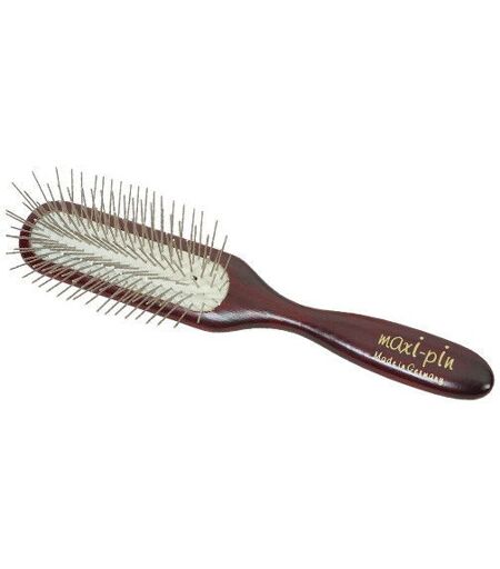 Maxi Pin Hundebørste Smal Svart 22 cm Maxi Pin Hundebørste Smal Svart 22 cm er en klassisk hundebørste som passer for daglig bruk. Denne smale børsten har lange pigger og er ekstra effektiv for å børste tykke pelser. Børsten et utformet for å fjerne løst hår på en effektiv måte, stimulere blodsirkulasjonen i huden og rede ut floker i hundens pels. Håndtaket er laget av tre, noe som gjør børsten behagelig og lett å håndtere under børstingen.Spesifikasjoner: Bredde: 3 cm Høyde: 9,5 cm Totallengde: 22 cm Pigglengde: 2,5 cm ...