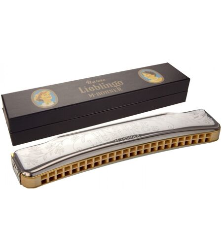 Hohner Unsere Lieblinge 48 Harmonica er en harpe med en varm rik tone ideell for å spille folkemusikk. En del av Hohner Octave Series de 48 hullene er delt over to rader og de to sivene til hvert par er innstilt en oktav fra hverandre. Dette er det som skaper den fulle fyldige lyden som fungerer så bra alene eller som en del av et ensemble. Unsere Lieblinge har også en lønnekam som gir den varme tonen karakteristisk for folkestilen. Hold munnspillet ditt komfortabelt. Den særegne buede formen har lenge vært den tradisjonelle formen når det gjelder folkemusikk. Men reason bak dette er ikke bare å se bra ut. Den buede formen er behagelig å holde så du vil føle at du er fornøyd med å spille under lange øvelser. Unsere Lieblinges enkle og pålitelige konstruksjon - med deksler som er festet med skruer - gjør denne harpen enkel å vedlikeholde. ...