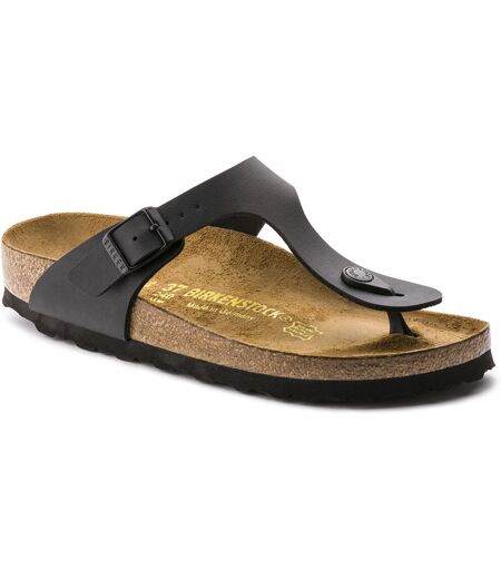 Gizeh-modellen fra Birkenstock er en ekte klassiker. En unisex sandal med en stropp med individuelt justerbar metallpinnespenne. Mote og funksjonalitet kombineres i perfekt harmoni på denne elegante strengsandalen. Toppmaterialet er laget av slitesterkt Birko-Flor. Anatomisk formet streng Sølvfargede metall-spenner 4-hulls justerbare stropper Laget i Tyskland Sålebredde: Vanlig Topp: Birko-Flor Innside stropper: Semsket skinn Fotseng: Naturlig kork og lateks Såle: EVA-Såle (slitesterk gummi) ...