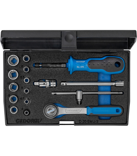 Gedore Blue Line, D 20 Emu-3, 17-Stk Ud Profilsokkelsett 1/4 Tommer, 4-13 Mm, 1 Sett, Sgd-1815652